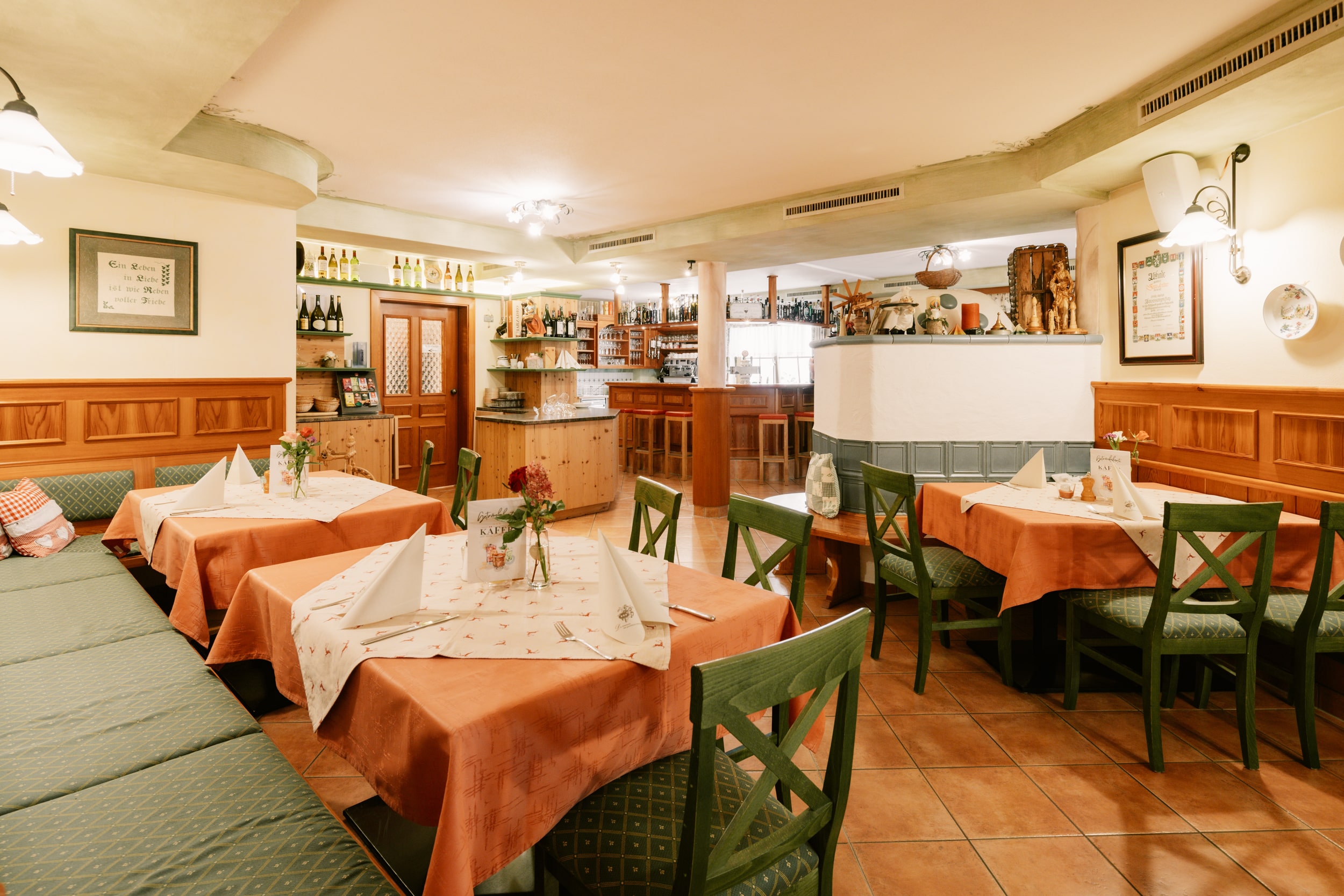In unserer stilvollen Bar und unserem gemütlichen Restaurant verwöhnen wir Sie mit köstlichen regionalen und internationalen Spezialitäten sowie erfrischenden Getränken.